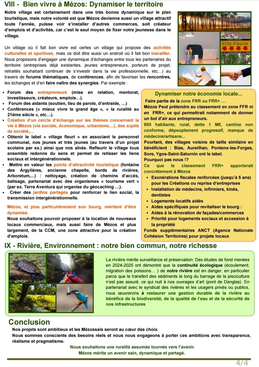 Nous voulons le préserver, le rénover et le valoriser pour transmettre aux générations futures une ruralité fière, dynamique et attractive : un Mézos où il fait bon vivre en harmonie avec la nature, où l’on cultive nos racines tout en innovant pour l’avenir